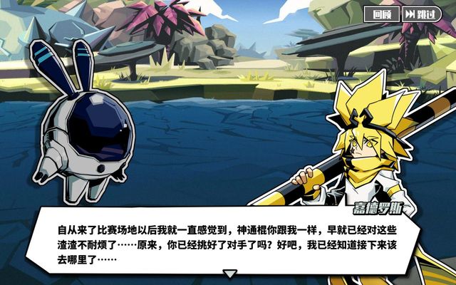 嘉德罗斯自从来了比赛场地以后我就一直感觉到,神通棍你跟我样,早就已经对这些渣渣不耐烦了……原来,你已经挑好了对手了吗?好吧,我已经知道接下来该去哪里了……
