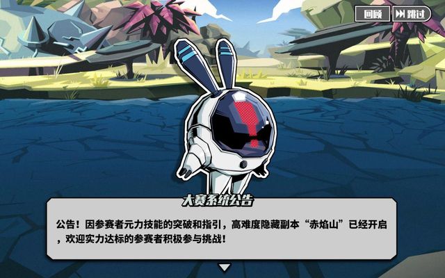 大赛系统公告公告!因参赛者元力技能的突破和指引,高难度隐藏副本赤焰山”已经开启,欢迎实力达标的参赛者积极参与挑战!