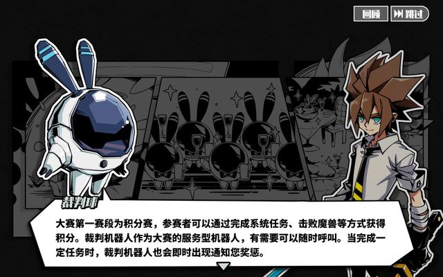 裁判球大赛第一赛段为积分赛,参赛者可以通过完成系统任务、击败魔兽等方式获得积分。裁判机器人作为大赛的服务型机器人,有需要可以随时呼叫。当完成一定任务时,裁判机器人也会即时出现通知您奖惩。
