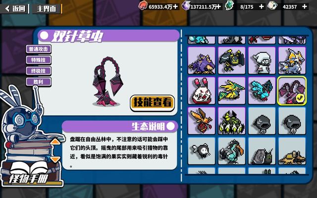 紫堂幻盘踞在自由丛林中,不注意的话可能会踩中它们的头顶。摇曳的尾部用来吸引猎物的靠近,看似是饱满的果实实则藏着锐利的毒针。