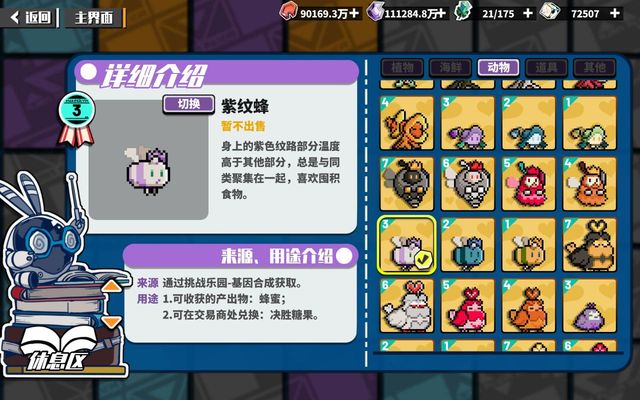 身上的紫色纹路部分温度高于其他部分,总是与同类聚集在一起,喜欢囤积食物。
