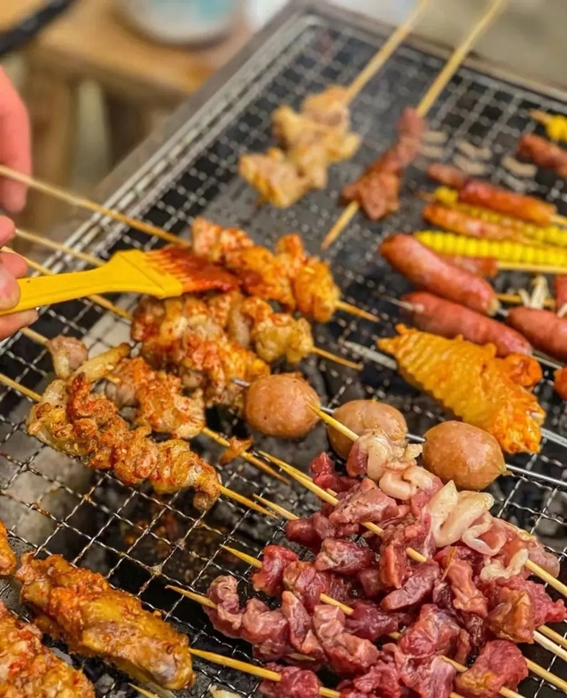 站在一旁的宋亚轩眼睛直勾勾地盯着烧烤架上的肉串。林梦微微一笑,专注地翻动着肉串,让每一面都能均匀受热。不一会儿,肉串表面变得金黄金黄,散发出诱人的光泽,仿佛在诉说着它的美味。