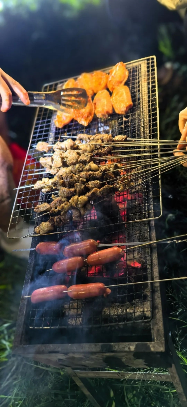 空气中弥漫着烤肉久违的香味,与篝火的温暖交织在一起,让人忍不住垂涎欲滴。大家一边烤着,脸上洋溢着幸福的笑容。