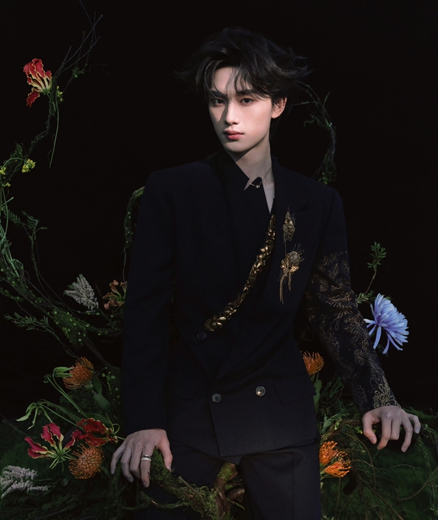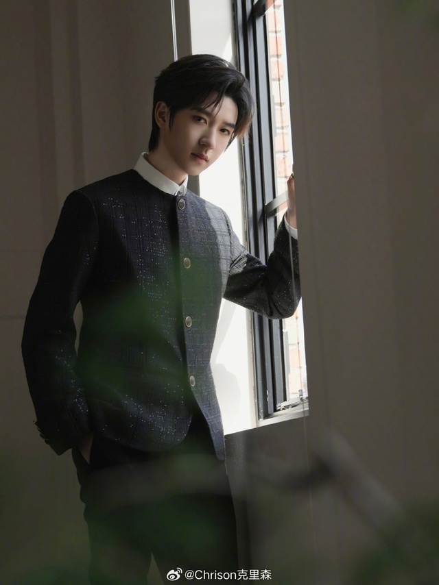 丁程鑫身着的黑色西装,饰以金色花纹图案,尽显神秘高雅。稍长凌乱的黑发,搭配深邃眼神与精致面容,更添几分不羁。右手戒指闪耀,优雅气质不言而喻。他整体造型令人眼前一亮,帅得恰到好处。