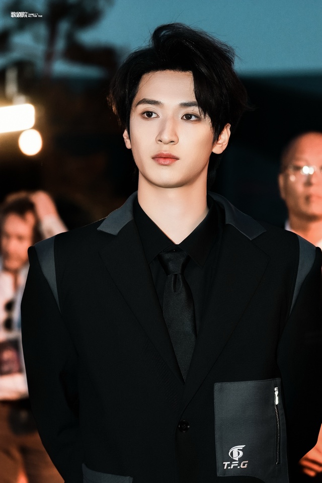 严浩翔身着的黑色西装,尽显高端正式风范。同色系领带巧妙搭配,更添一丝沉稳与雅致。发型整齐蓬松,面部精致如画,眉骨挺立。在暖色调灯光的映衬下,他仿佛从人群中走出的焦点,他完美诠释了低调中的奢华,令人瞩目不已。