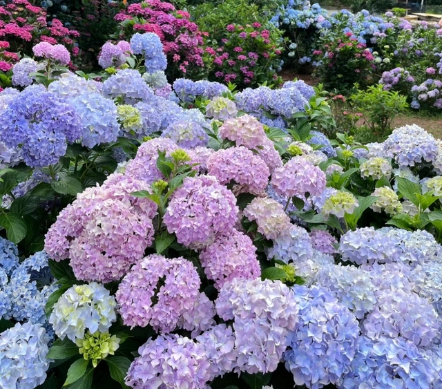 没到夏天来临,村子后面的山坡上都会开满无尽夏,风儿吹过,就像一盘被晕染开的油画,不同的颜色相融的那么和谐