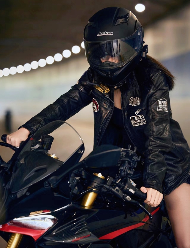摘下头盔,乌黑亮卷的长发散落,修长匀称的腿跨下机车,一个男生从场馆里面给她送来了工作牌,一起来的还有李飞