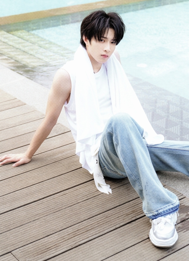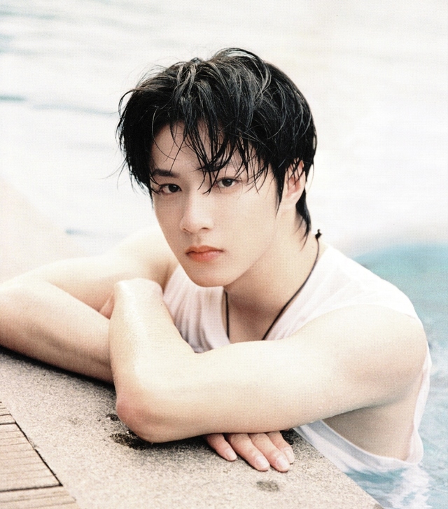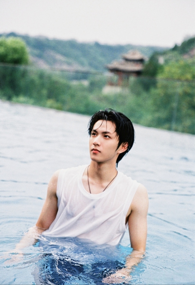 泳池不深刚好淹没习喜的肩膀,到刘耀文的胸口