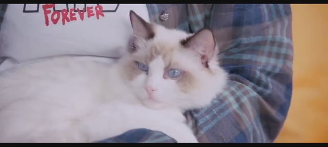 看完房间的童谣,正在房间内摸着自己的猫🐱