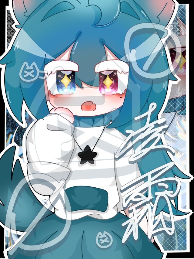 眼睛为异瞳,一蓝一粉,如