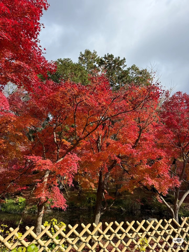 枫叶如火,燃烧在深秋的暮霭中。几株枫树像被夕阳点燃一般,叶片染上了最浓郁的朱红与橙黄,在微风中轻轻摇曳,宛如天边落下的晚霞栖息枝头。竹篱笆横斜交错,勾勒出一幅天然画框,将这幅秋日盛景温柔地圈住。远处,层林尽染,天色半阴,云朵慵懒地堆积着,似是不忍打扰这片刻的宁静。薄雾轻笼,给整个画面蒙上一层淡淡的怀旧滤镜。此时此刻,仿佛时间也放慢了脚步,让万物得以在这最美的季节里尽情舒展。这段文字着重营造了静谧而温暖的氛围,通过意象和色彩的交织,展现出秋天独有的韵味与意境