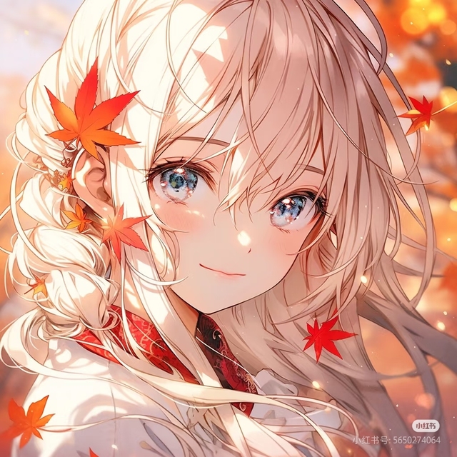 秋风轻拂,一位宛如从童话中走来的少女站在枫叶纷飞的小径上。她那一头金色长发如阳光般闪耀,在微风中轻轻飘动,与周围橙红色的落叶相互辉映。深蓝色的眼眸清澈明亮,仿佛藏着一泓秋水,又似蕴含着无尽温柔。她身着一件绣着精致红色纹样的衣裙,那灵动的图案像是在诉说着古老的故事。嘴角挂着一抹淡淡的微笑,既不张扬也不羞涩,恰似秋日暖阳下最美好的风景。枫叶在她身边翩翩起舞,宛如一群忠实的精灵围绕着她,为这幅画面增添了几分诗意。在这片温暖的橙色世界里,她就像是一束最柔和的光,散发着宁静而平和的气息,让人不禁放慢脚步,想要细细品味这份美好