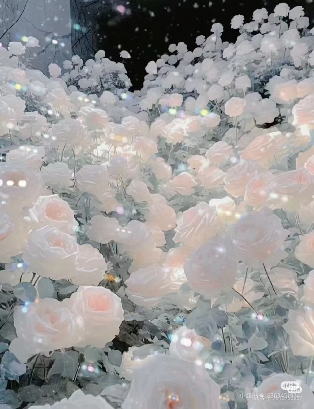 夜幕低垂,黑暗如绸缎般温柔地铺展。在这片深邃的背景下,一朵朵粉色与白色的花朵如繁星坠落人间,密密麻麻地簇拥在一起,仿佛要将整个世界都温柔包裹。每一朵花都像是从童话中走来的精灵,花瓣娇嫩欲滴,透着晶莹的光泽。细碎的露珠在月光下闪烁,宛如星星遗落的泪滴,为这片花海增添了几分灵动与神秘。微风轻拂,带着甜美的芬芳,花瓣轻轻摇曳,发出沙沙的低语,似乎在诉说着某个久远而美好的故事。远处传来若有若无的乐声,似有似无,如同梦境边缘那一抹难以捉摸的诗意。这不仅仅是一片花海,更是一个被时间遗忘的梦幻之境,在这里,现实与幻想交织,美与神秘共舞,让人不禁沉醉于这份静谧而绚烂的美好之中