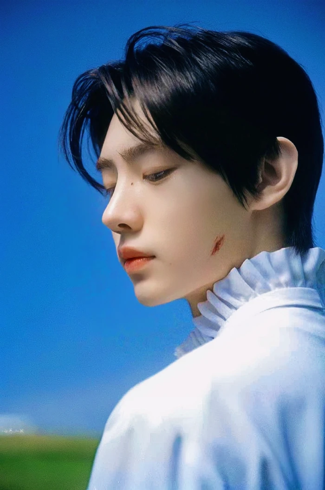朴成训大概是察觉到了,微微侧过头,没再动,只是睫毛轻轻颤了颤,任由那些带着海盐气息的沙粒,成了他白皙皮肤上细碎又生动的点缀。