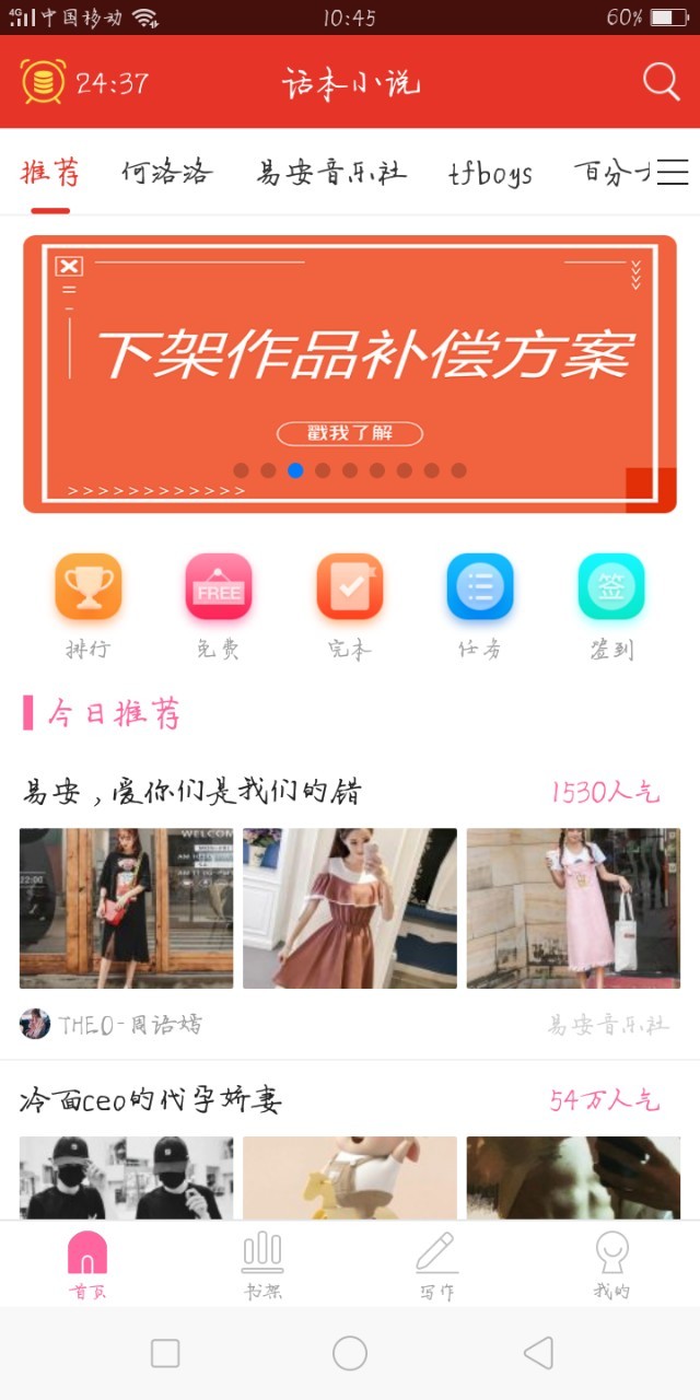 谢谢大家,今天又上推荐了,昨天晚上怦然心动,tf家族也是,谢谢大家