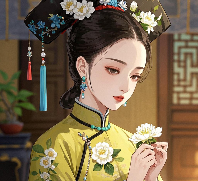 江采蘋身姿纤细,好似一阵微风便能将她吹倒,月色下,她肌肤胜雪,泛着柔和的微光,恰似那被月光润泽的美玉,温润而细腻,眉眼间尽是楚楚动人之态,双眸如盈盈秋水,在月光映照下,波光流转,藏着无尽的温柔与灵动 ,琼鼻秀挺,樱桃小口不点而朱,一头乌发在月光下泛着绸缎般的光泽,几缕碎发垂落在白皙的脸颊边,更添了几分惹人怜惜的韵致