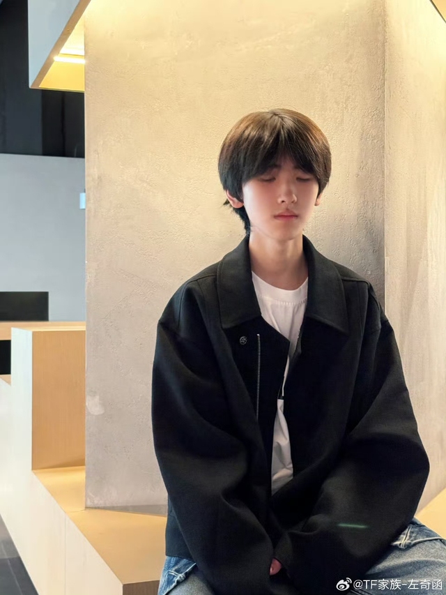 左奇函穿着简单的黑外套白T,书包也不背好,单边斜斜地挎在肩上,他大步走在前面,背影落拓又挺拔。