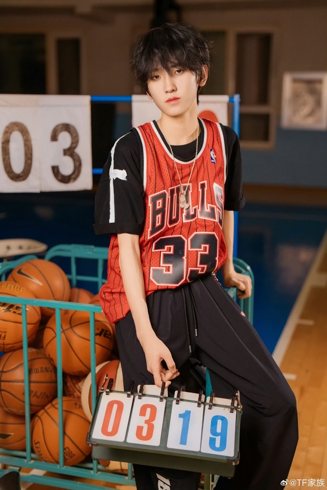 他进了一个三分球,回头和队友说了一句什么,嘴角挂着笑,整个人热烈又张扬,让人移不开眼。