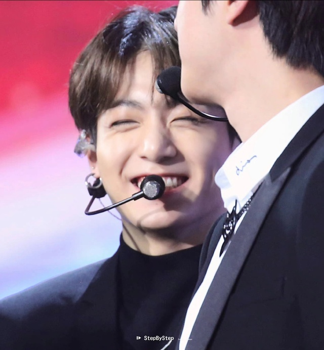 田柾国开心的走上来,和刚刚走红毯高冷的他形成了对比