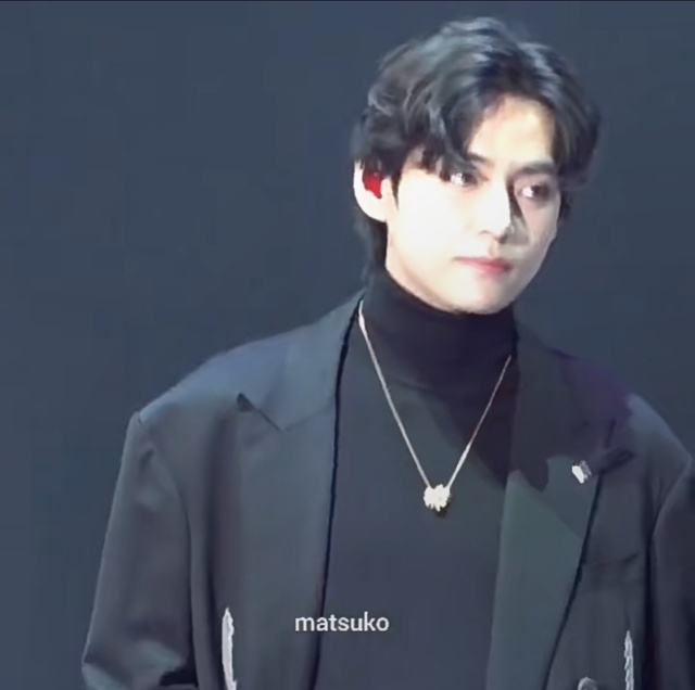 金泰亨拿着奖杯,走到蔡徐坤和陈心漾旁边,比了个耶,然后台下的田柾国拿着手机照了张照片,金泰亨才下去