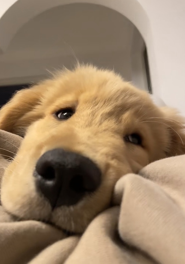 回到家,陈心漾就窝在沙发上,家里的小金毛也一转眼变成了大狗狗