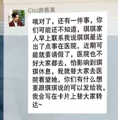 李雪琴游总监在群里发消息说她和季总监一起要去看望杜对琪。