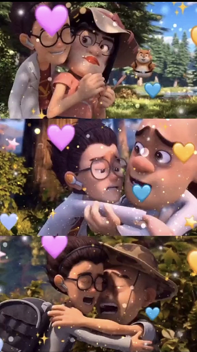 熊二(本来还想装着听不见,再睡一会儿,但一听到是自己的宝贝蜂蜜,立马起身爬了起来。)怎么啦?怎么啦?我的宝贝蜂蜜怎么啦?