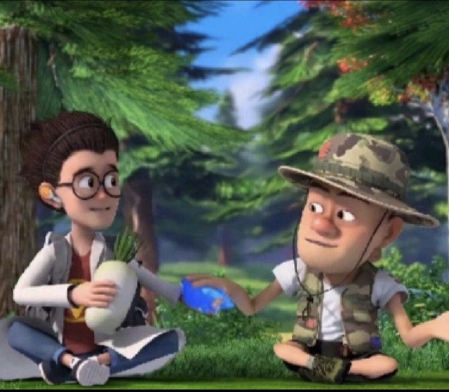 光头强(推开椅子坐了下来。)首先,天才威这个家伙发明的东西很厉害,所以咱们得先得到他那个发明的东西,让他没有东西伤害我们。