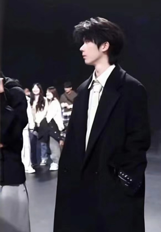 孙馨若到达排练场地,看到马嘉祺穿着黑色风衣,面无表情地看着面前的工作人员。
