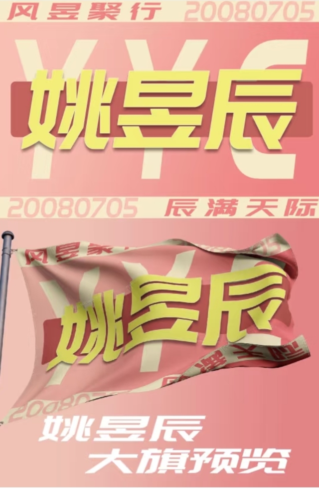 粉色的旗子在台上飘扬