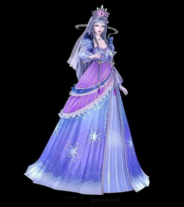 星斗大森林里一个头戴王冠穿着公主裙的女生走过