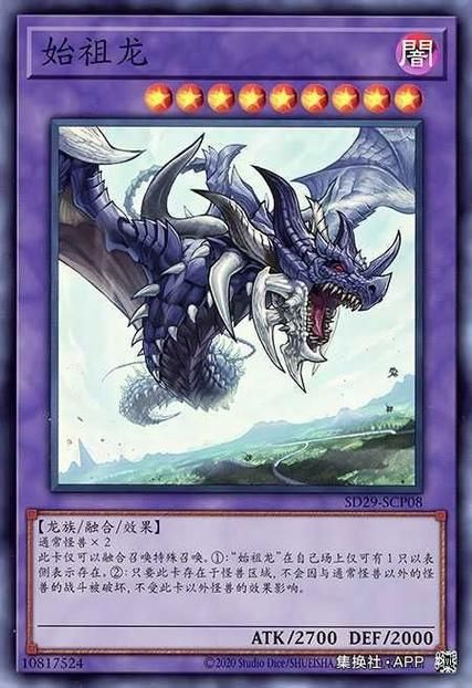 【效果:此卡仅可以融合召唤特殊召唤.①:“始祖龙”在自己场上仅可有1只以表侧表示存在,②:只要此卡存在于怪兽区域,不会因与通常怪兽以外的怪善的战斗被破坏,不受此卡以外怪兽的效果影响】