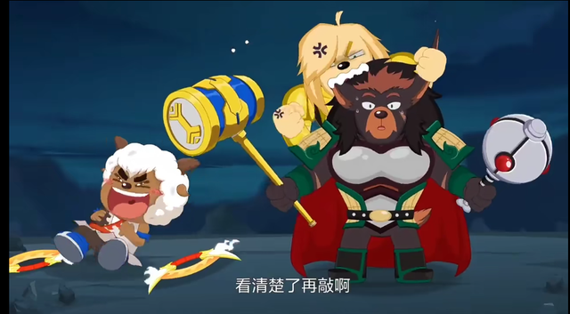 美羊羊力将军可能以为旺财将军的武器是他的锤子吧