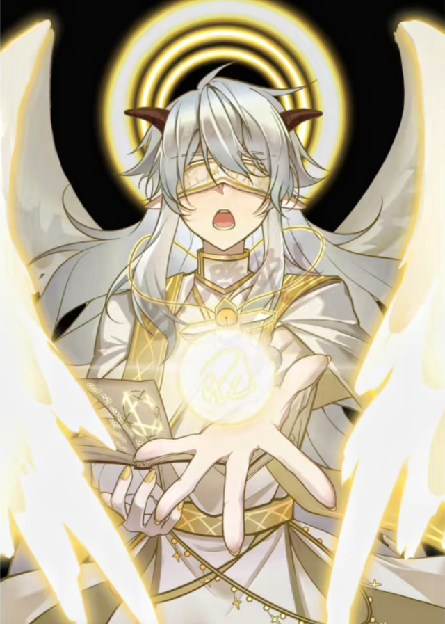 当战争迈入高潮,一片圣洁的光辉骤然洒落大地,犹如黎明的第一缕曙光撕裂漫长黑夜。神明睁开双眼藐视着众生,身后的六翼应声展开,其华光仿若破晓时分的晨曦,将天地映照的熠熠生辉,那光芒如同神明亲临的昭告,整个世界仿佛为之屏息,天地间再无杂音,唯余羽翼轻振的幽微回响,在虚空之中绵延不绝