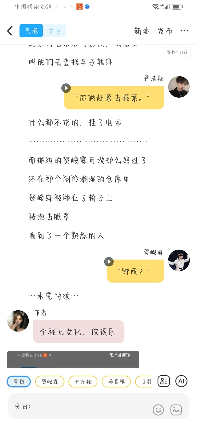 刘耀文“把她交给警察吧。这里交给我,你带贺峻霖回去了吧。”