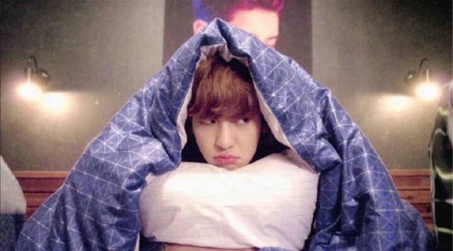 悠悠转醒后看向坐在地上紧紧裹着被子一脸幽怨的眼神看着他的朴灿烈。