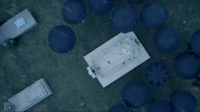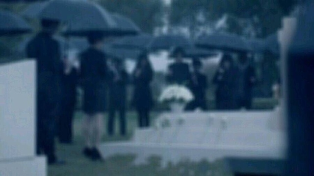 阴暗的天空中下起了不大不小的雨,在这个寂静的墓陵中只能听见冰凉的雨水噼里啪啦打在伞顶的声音。