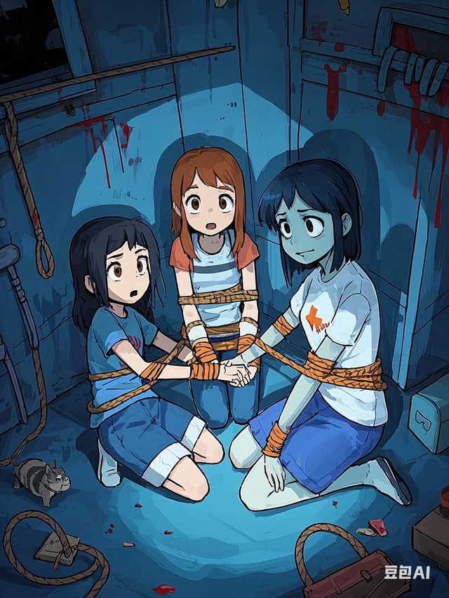 三姐妹被吓得脸色苍白,身体不停地颤抖。劫匪们迅速将她们捆绑起来,扔在客厅的地上。杜诗韵强忍着内心的恐惧,努力让自己镇定下来,问道:“你们想要干什么?”