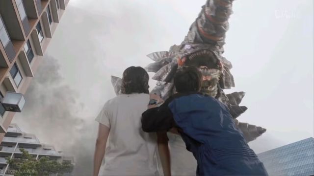 就在这时,旁边的大楼突然爆炸,一个巨大的钻头,从土里钻出来,紧接着便是一只怪兽出现