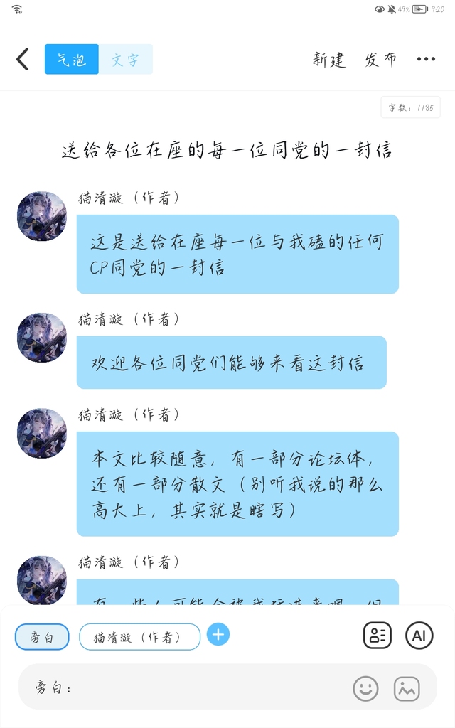 猫清漩(作者)番外里面给你们写了一封信,可以去看看