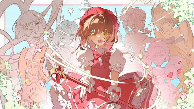 大屏的电视上正播放着那个令两人熟悉的身影:木之本樱,木之本樱正转动着魔法棒,召唤卡牌,向前方进攻