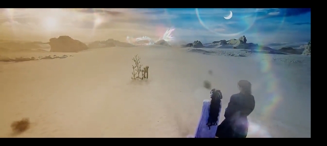就在下一刻,樊樾解下缰绳,三人被卷入狂暴的漩涡之中。你瞥见一个山洞,刚要挣脱樊樾的手去救白烁,却已被他预见般用法力稳住身形,将下坠的白烁揽入怀中。那一刻,三人的目光在风沙中交汇。