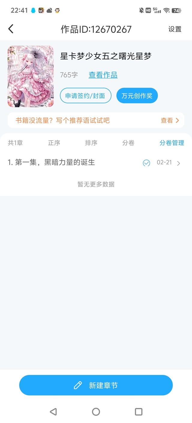 作者的星卡梦少女五也更了一章了,大家可以看。