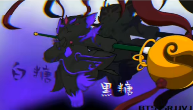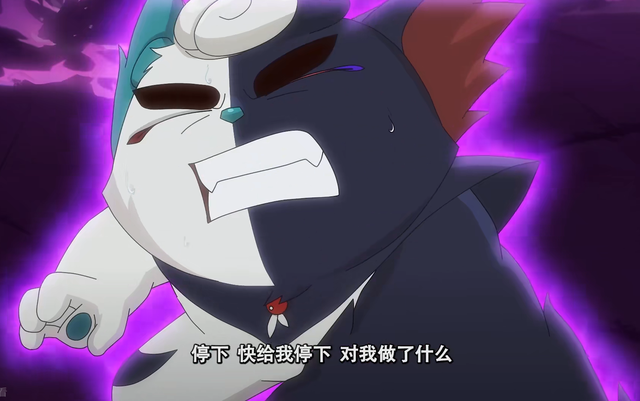 白糖出现半魔化,身体表面浮现出不规则的黑色纹路,双眼闪烁着异样的紫光,显得既神秘又危险。