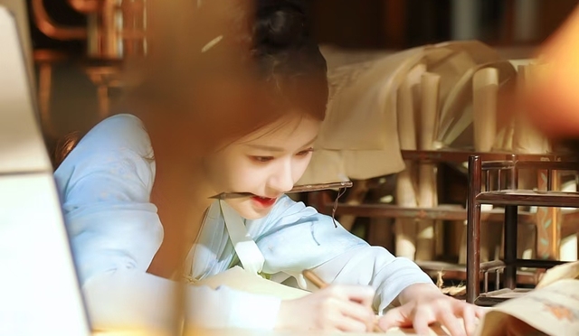深夜玱玹的身体再次因为药引忍不住服下逍遥丹,短暂的欢快过后,剩下身体无尽的衰败,让玱玹无法入睡,便出去散散心,不知不觉间玱玹走到了夭夭的房间里,在门外玱玹发现夭夭房间的灯还在亮着,忍不住好奇心推开进去,只见夭夭嘴里叼着一根笔,双手拿着笔在写什么
