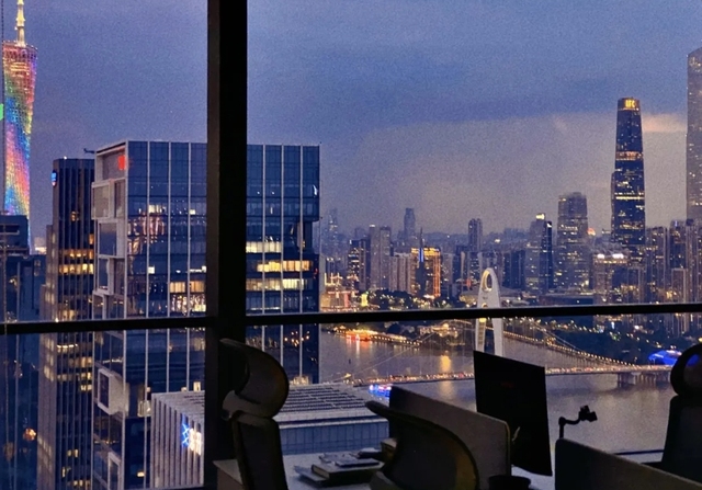 透过落地窗望着楼下的车水马龙。