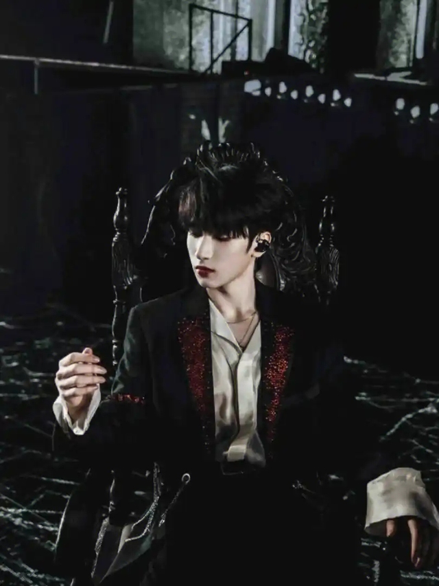 一头乌黑茂密的头发下眼神凛冽桀骜,优越的骨相此刻带着些许戏谑的笑意