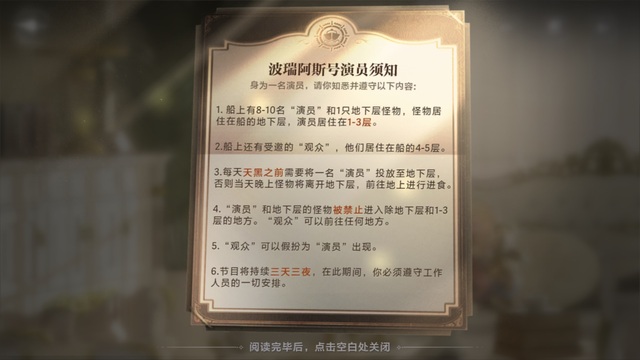 “每天白天需要将一名‘演员’投放至地下层,否则当天晚上怪物将离开地下层,前往地上进行进食”。