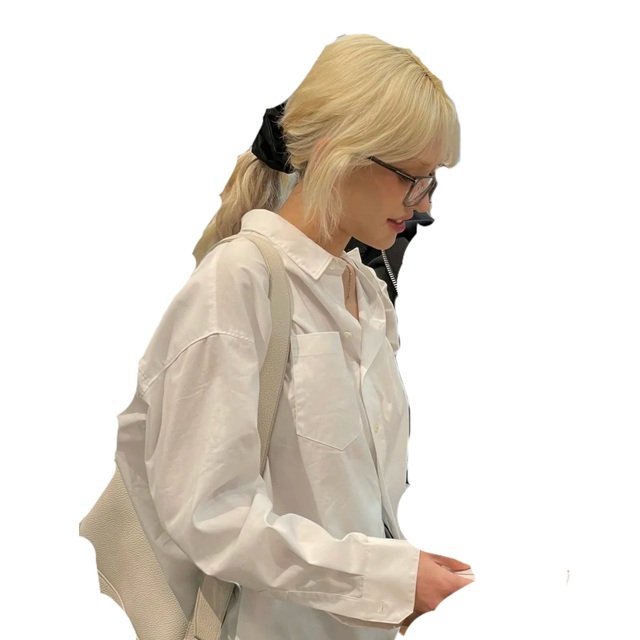 somi一开门更强烈的酒味扑鼻而来 somi穿了个白色衬衫 灰色裤子 绑了个低马尾 黑框眼镜