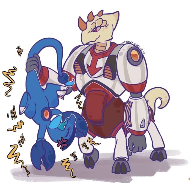 天蝎下意识拿尾巴去攻击射手,谁料自己直接被抓住尾巴拎起来了